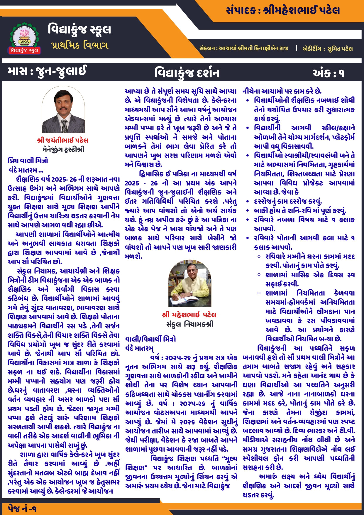 ઈ-પ્રત્રિકા વિદ્યાકુંજ પ્રાથમિક - પેજ - ૧