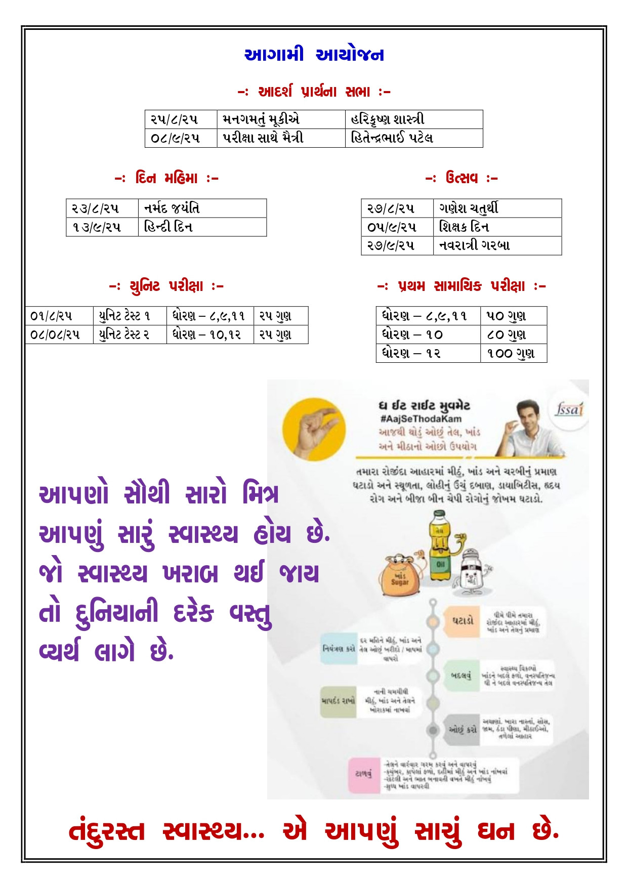 ધોરણ - 8 પ્રથમ પરીક્ષા