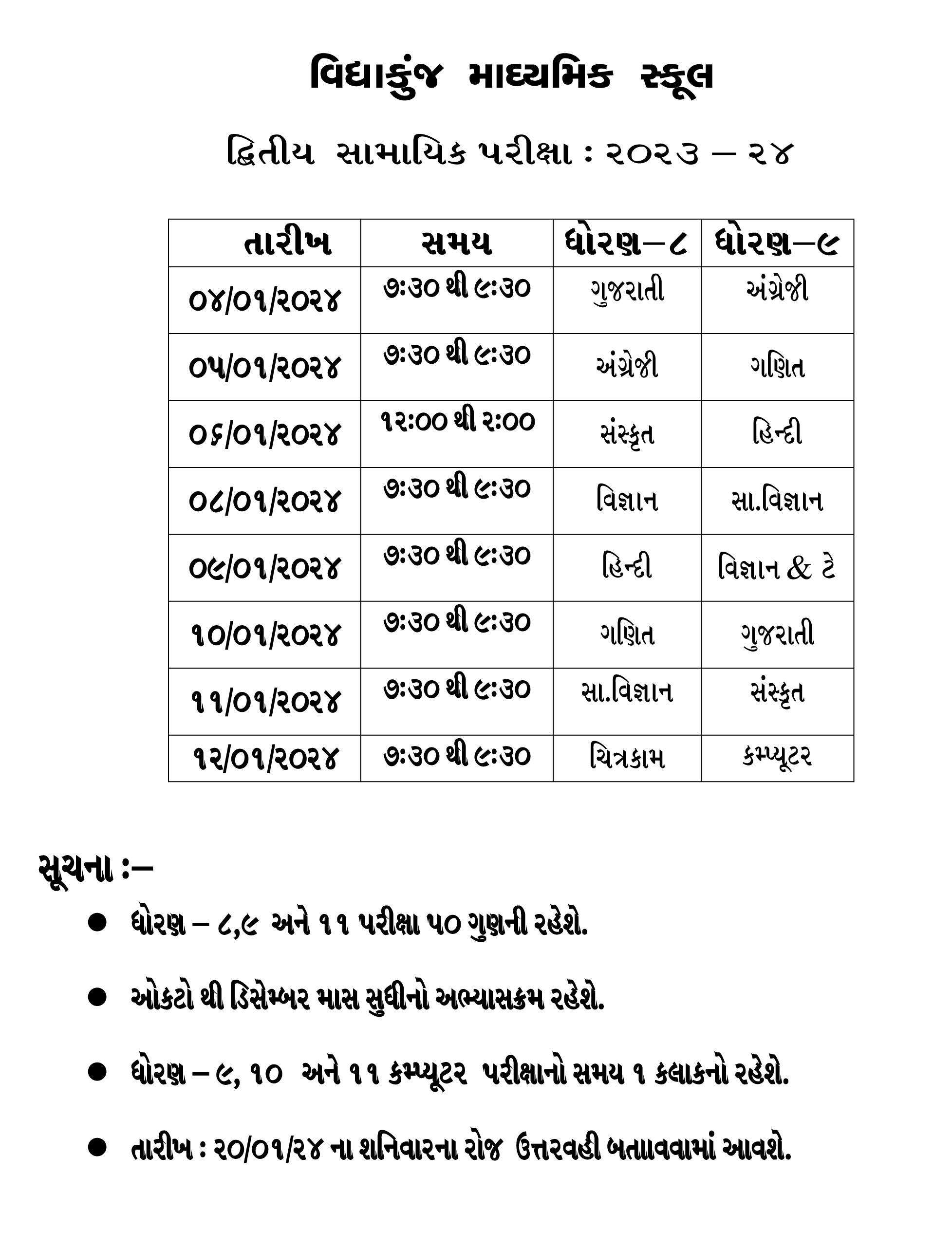 ધોરણ - 8 પ્રથમ પરીક્ષા